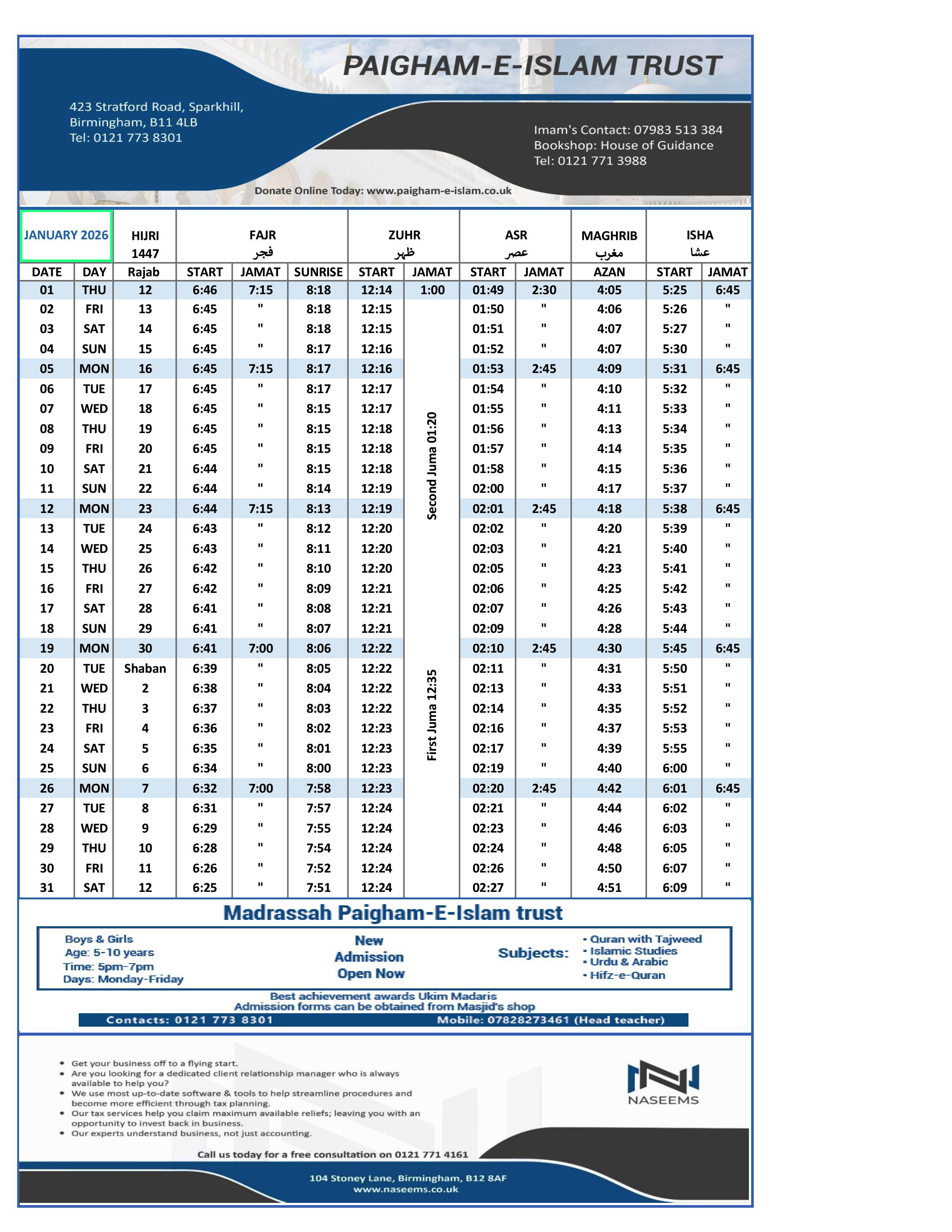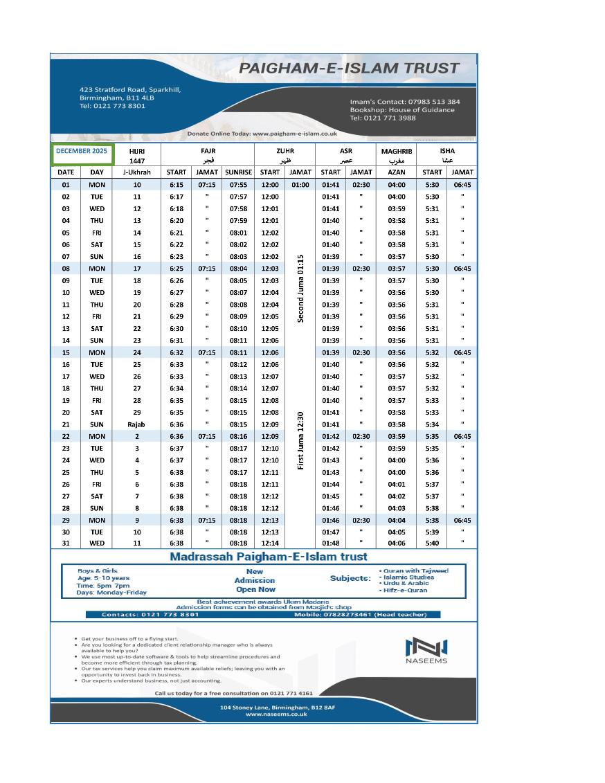 FRIDAY PRAYER : 1st : 12:35 PM 2nd : 1:20 PM